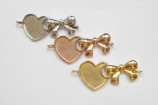 ステンレス316LブレスレットJタイプ(ハート・リボン)(ステンレスシルバー、ゴールド、ピンクゴールド)