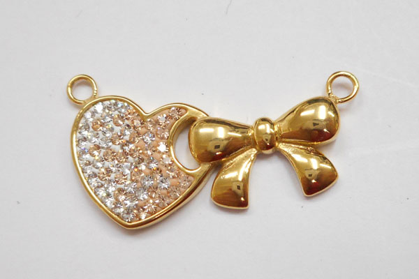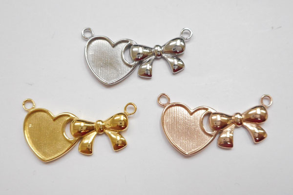 ステンレス316LペンダントPタイプ(ハート・リボン)(ステンレスシルバー、ゴールド、ピンクゴールド)